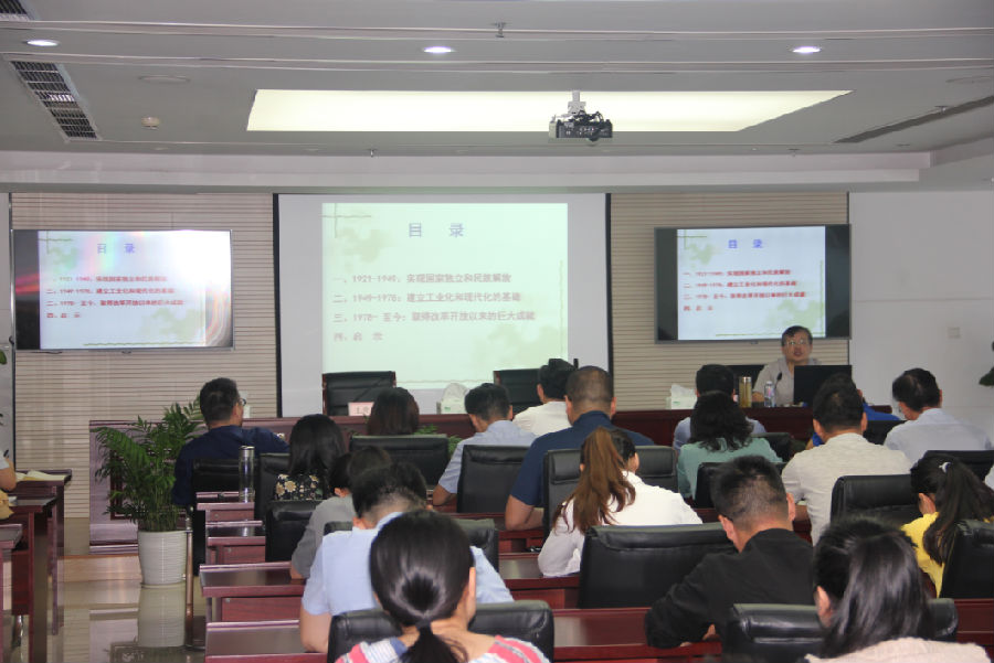 为贯彻落实习近平总书记关于学习党史国史的主要头脑,,,,,,重温党的历史,,,,,,传承红色基因,,,,,,增强做好公司刷新生长稳固各项事情的自觉性,,,,,,9月28日下昼,,,,,,在即将迎来中华人民共和国建设71周年之际,,,,,,公司约请市委组织部刘金峰同志教学《中国共产党斗争历程及其启示》专题党课,,,,,,集团公司中层及以上治理职员、子公司认真人、全体党员加入党课学习。。。