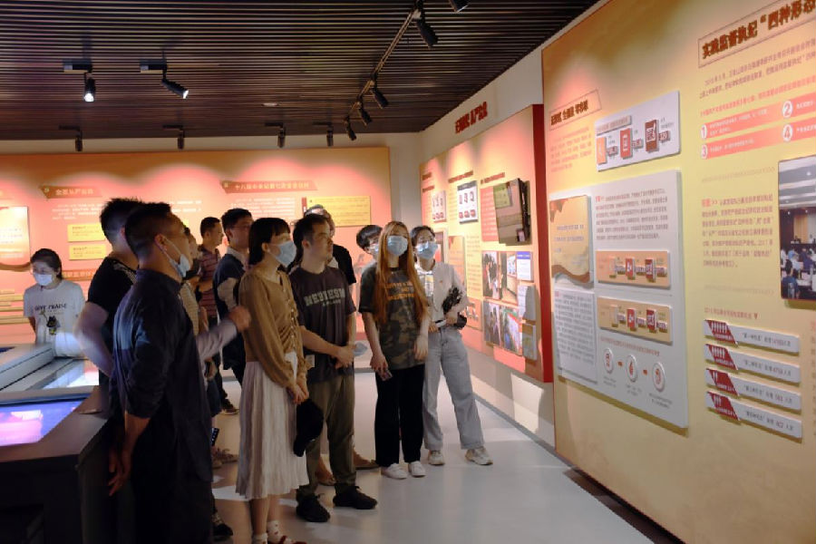 在解说员的指导下,,,,,,全体职员依次旅行了“廉史纵横”“寰球视野”“反腐征程”“时代楷模”四个展区,,,,,,通过浏览图片资料、寓目视频、互动体验等形式,,,,,,从差别角度相识中国清廉文化的历史传承、中国共产党反腐历程以及省、市推进惩办和预防糜烂事情的效果。。。。教育馆还展示了我们党各个历史时期各条战线上涌现出的一大批先锋模范,,,,,,这种警示案例和时代楷模的强烈比照更是让宽大员工心灵深受震撼和洗礼。。。。