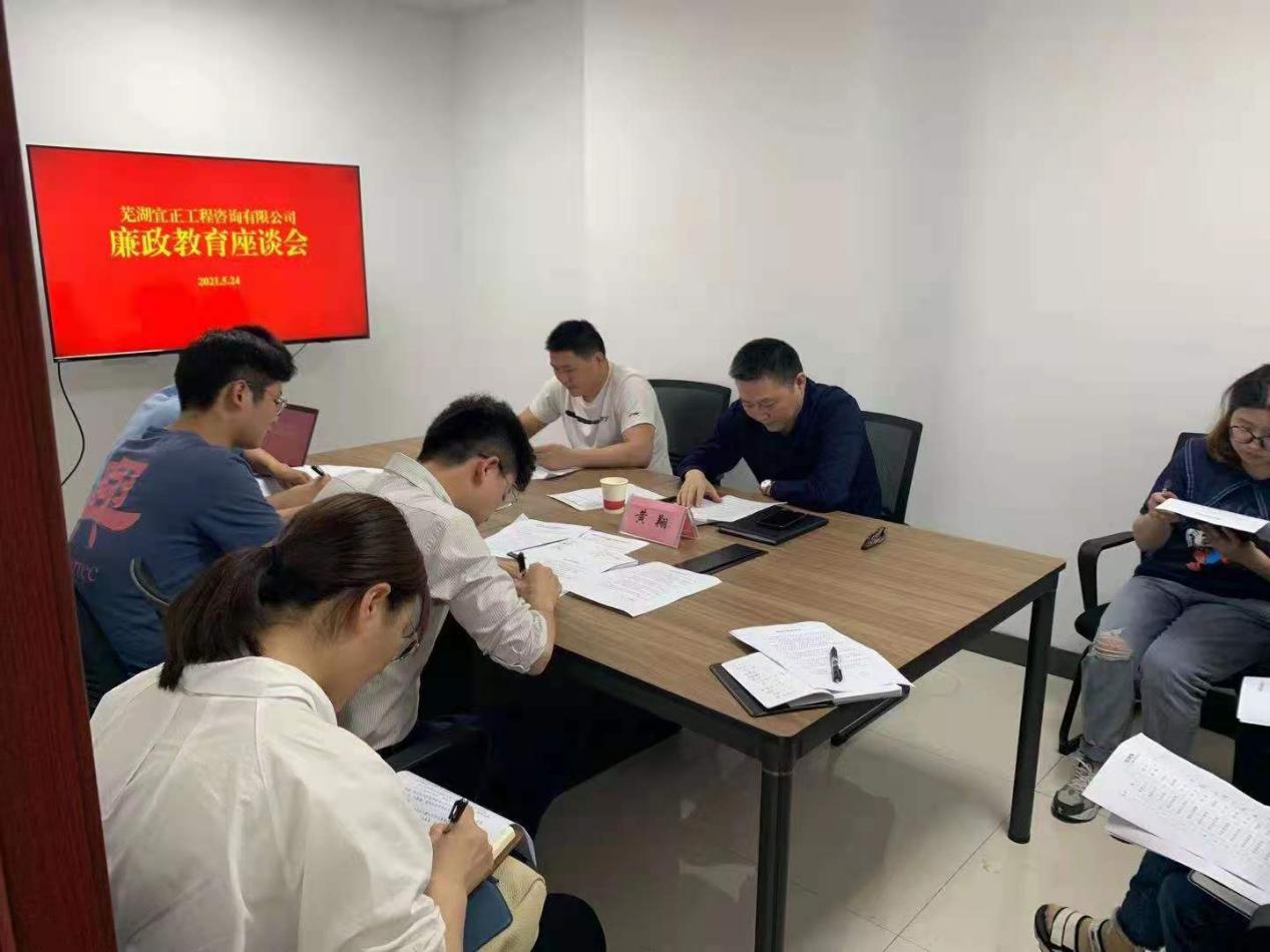 旅行活动竣事后,,,,,由集团公司纪检认真人黄翔同志主持召开廉政教育座谈会,,,,,公司全体员工加入了聚会。。。座谈会上,,,,,宜正公司汇报了近期各项事情开展情形,,,,,并组织公司全体员工签署清廉自律允许书。。;;;;;葡柰揪偷撤缌建设的主要性和现在面临的严肃形势举行了系统叙述,,,,,并在头脑和制度层面临公司员工提出了要求。。。一是要增强廉政学习,,,,,树立准确的天下观、人生观、权力观和职责观,,,,,增强执律例则学习,,,,,警钟长鸣,,,,,守好底线,,,,,不越红线,,,,,提高全员的头脑觉悟,,,,,把廉政教育贯串于事情始终。。。二是要增强制度建设,,,,,用制度管人,,,,,建设事前教育、事中规范、事后处分的健全机制。。。