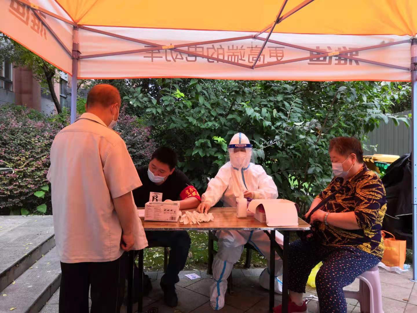 7月28日下昼,,,,,,,公司党委通过自愿者招募的形式,,,,,,,组织4名党员自愿者前往兆通大观和东方红郡小区封控区,,,,,,,配合社区做好核酸检测职员组织和挂号事情,,,,,,,自愿者分为2组,,,,,,,一组带动走进楼栋,,,,,,,挨家挨户宣传见告住民下楼到小区集中检测点检测,,,,,,,另一组指导各人排队,,,,,,,为住民挂号信息,,,,,,,确保核酸检测事情顺遂完成。。。。。。一连事情3小时,,,,,,,协助事情职员完成4栋楼200多名住民第2次核酸检测事情。。。。。。