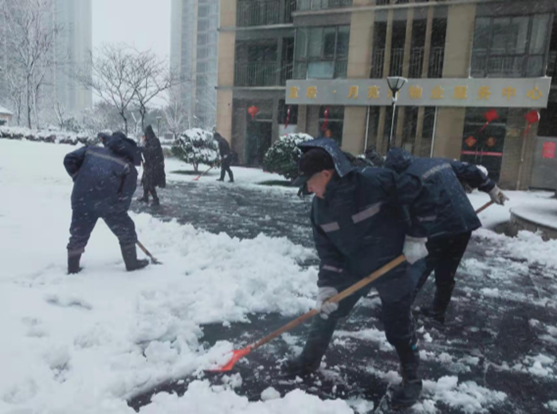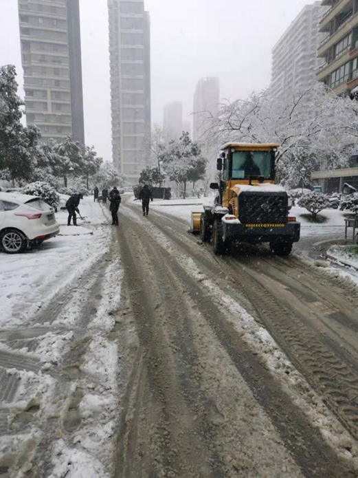 除雪现场,,,,,各项目处拿出前期“未雨绸缪”准备的物资,,,,,如工业盐、铁锹、除雪铲、防滑麻袋等。。。凭证前期制订的应急预案,,,,,职员迅速集结,,,,,合理分工,,,,,凭证“先主路、再支路、后便道”的原则,,,,,各人认真清扫积雪、扫除隐患,,,,,整理出一条条通道,,,,,包管住民出行。。。