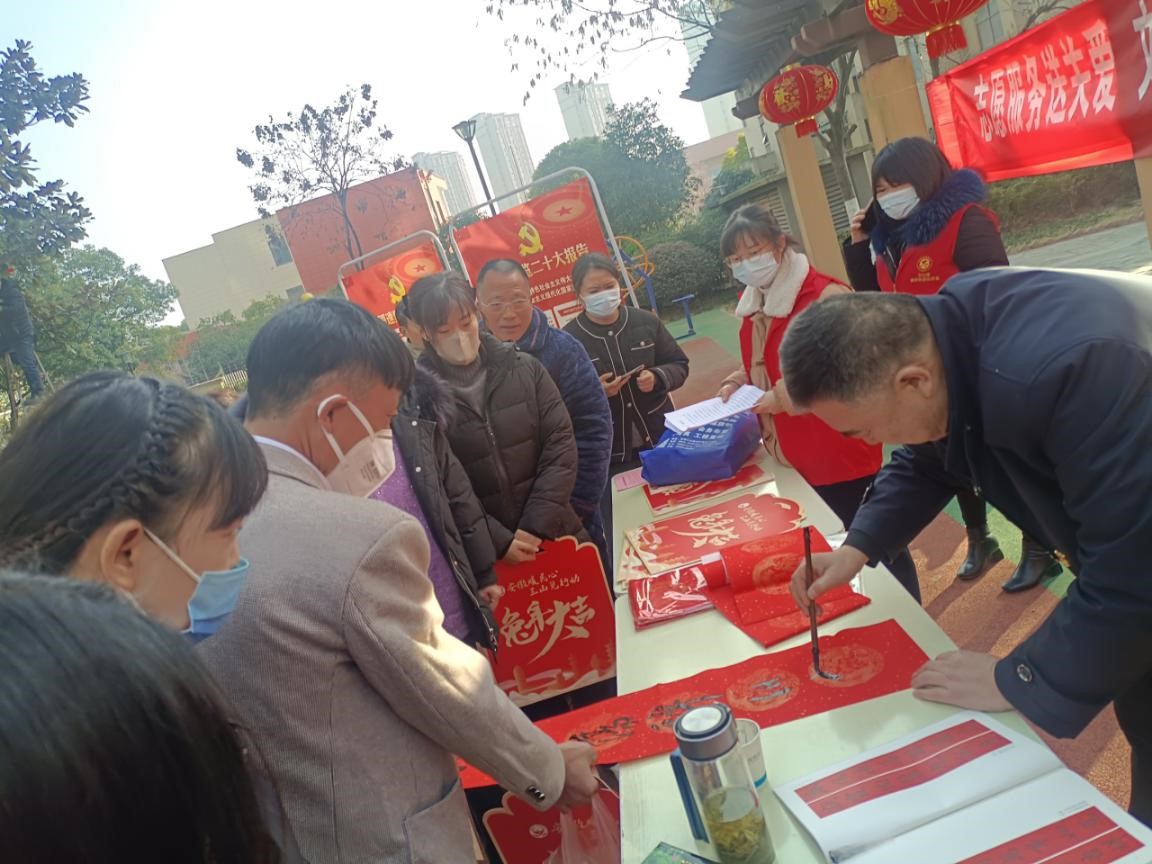 在公租房小区开展写春联、送祝福;;;疃,,,活动现场,,,书法家们饱蘸浓墨,,,在大红的纸上飞笔书福,,,既喜庆又红火,,,活动现场洋溢着一派节日的喜庆气氛。。。。。
