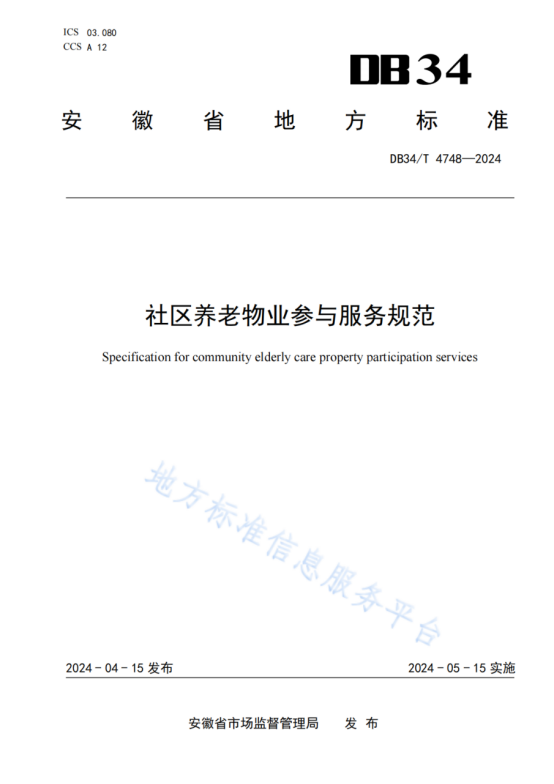 佰富彩养老公司主导起草的省级地方标准《社区养老物业加入效劳规范》(DB34/T4748-2024)经安徽省市场监视治理局批准宣布。。。该标准的宣布实验有用填补了安徽省社区养老物业加入效劳领域标准的空缺,,,标记着省域社区养老物业加入效劳事情将“有标可依”,,,实现了用标准引领省域社区养老物业加入效劳高质量生长。。。