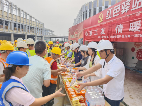 又是一年中秋时,,,,,,,芜湖梦溪科创走廊项目现场仍是一幅热火朝天主要忙碌的场景。。。。。为了把对项目一线的眷注落到实处,,,,,,,扎实开展“我为农民工办实事”系列活动,,,,,,,9月13日上午,,,,,,,宜创公司党支部联合梦溪科创走廊项目党支部开展中秋节前慰问,,,,,,,向工人们发放了月饼、饮用水等慰问品。。。。。